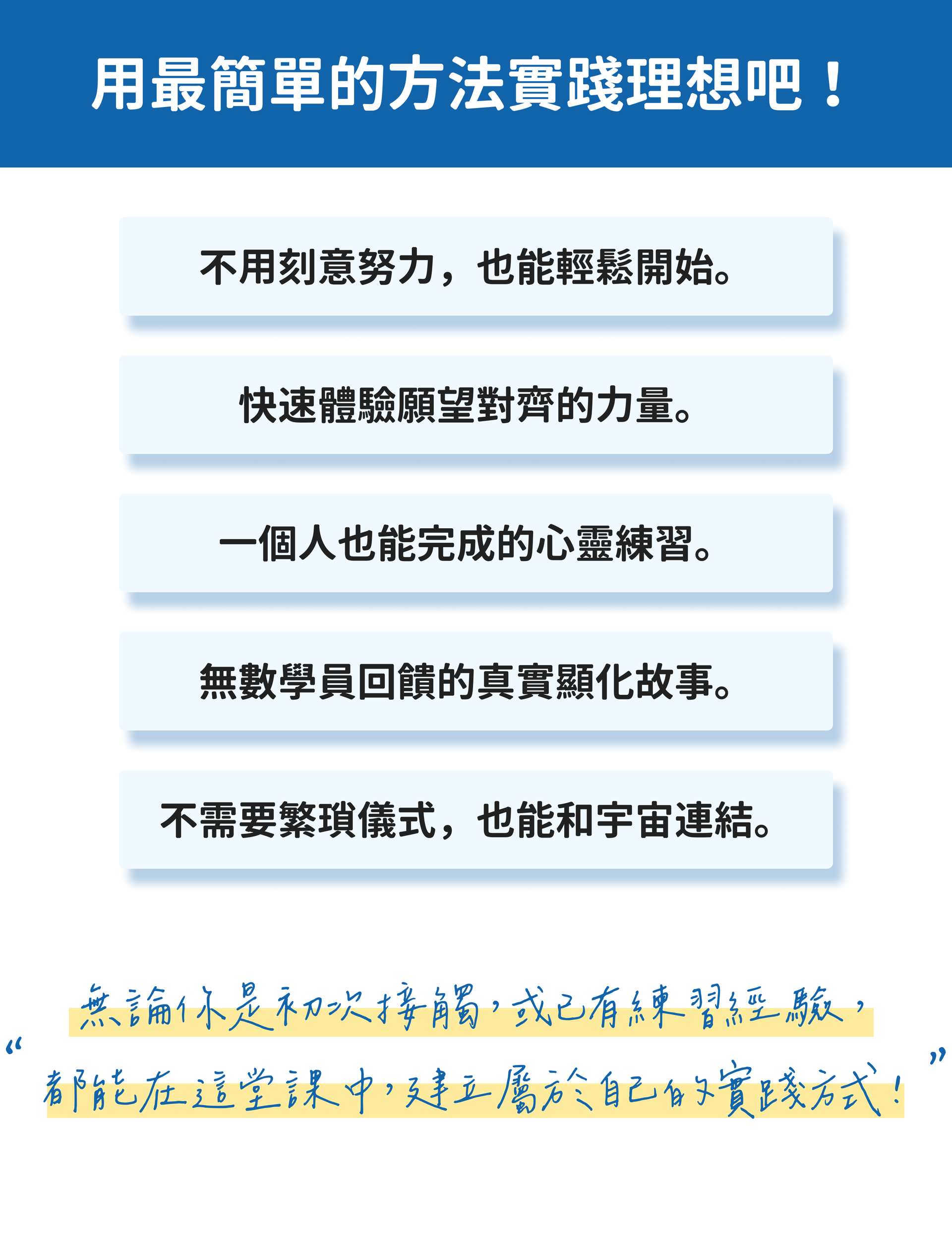 3. 掌握流程:學會宇宙下單五步驟(覺察 → 清理 → 願景 → 觀想 → 穩固)。