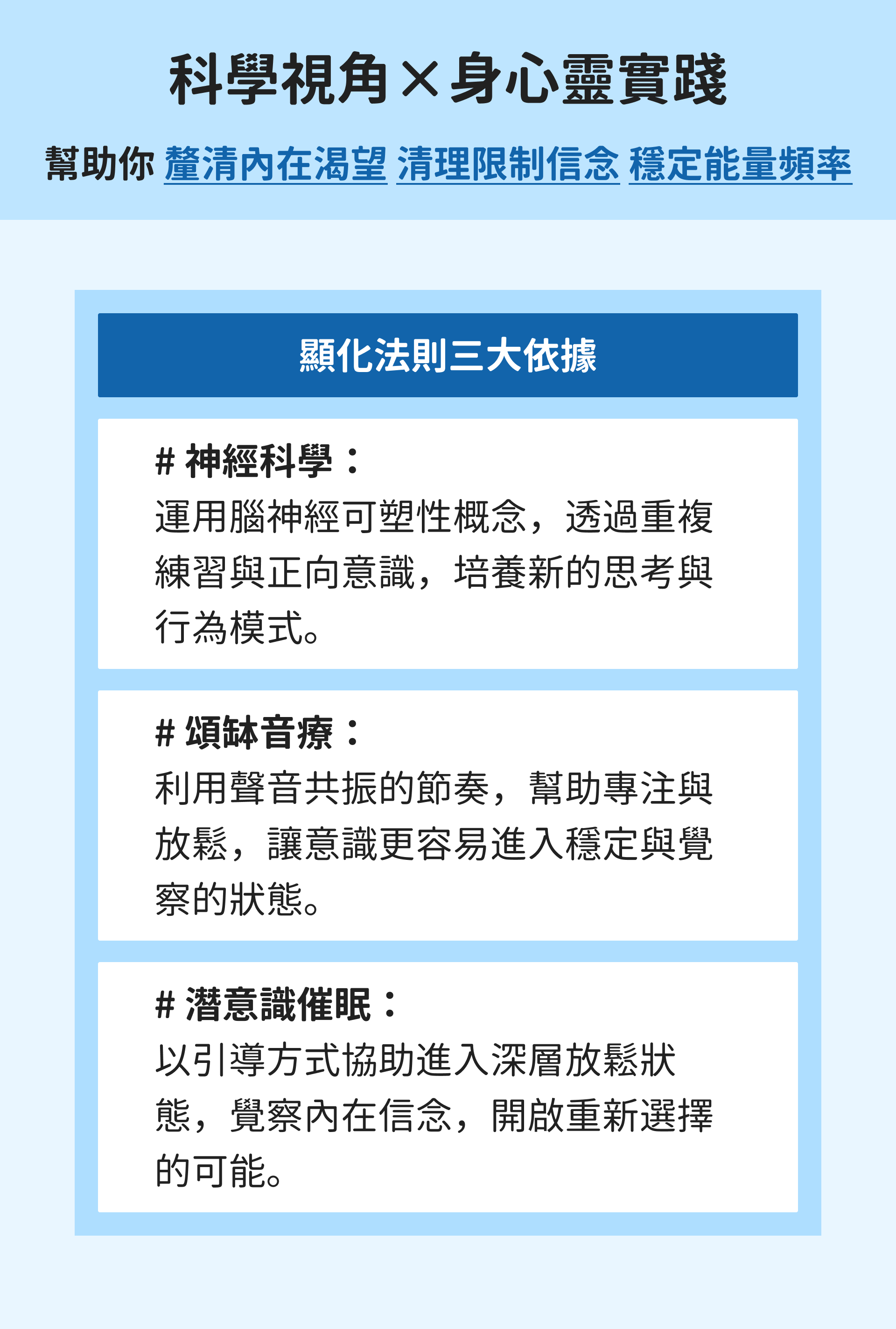 以「自我覺察、能量調頻、靈性成長」為核心的學習平台。